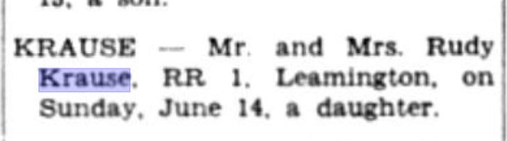 KRAUSE - Mr. and Mrs. Paul Krause of RR 1, Leamington, on August 17, a son.