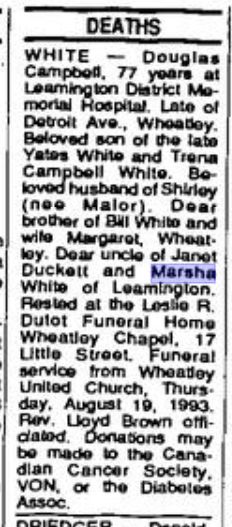 Visitation will be held at Reid Funeral Home- 14 Russell Street, 519-326-2631, on Monday April 7, 2025 from 2-5 p.m. Cremation to follow. A private family burial will be held at a later date. In lieu of flowers, donations may be made to Erie Shores Hospice or to the Windsor Essex County Humane Society. Memories and condolences may be shared at www.reifuneralhome.ca.