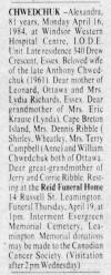 CHWEDCHUK LINEAGE CHWEDCHUK