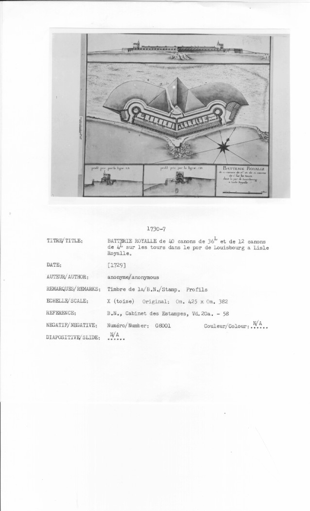 For additional text details (no images): HISTORICAL MAPS AND PLANS COLLECTION / CARTES ET PLANS HISTORIQUES (Description and Analysis of the Louisbourg and Isle Royale Map and Plan Collection / Descriptions de la Collection des plans et cartes de Louisbourg et d'Ile Royale - fortmaps.tba)