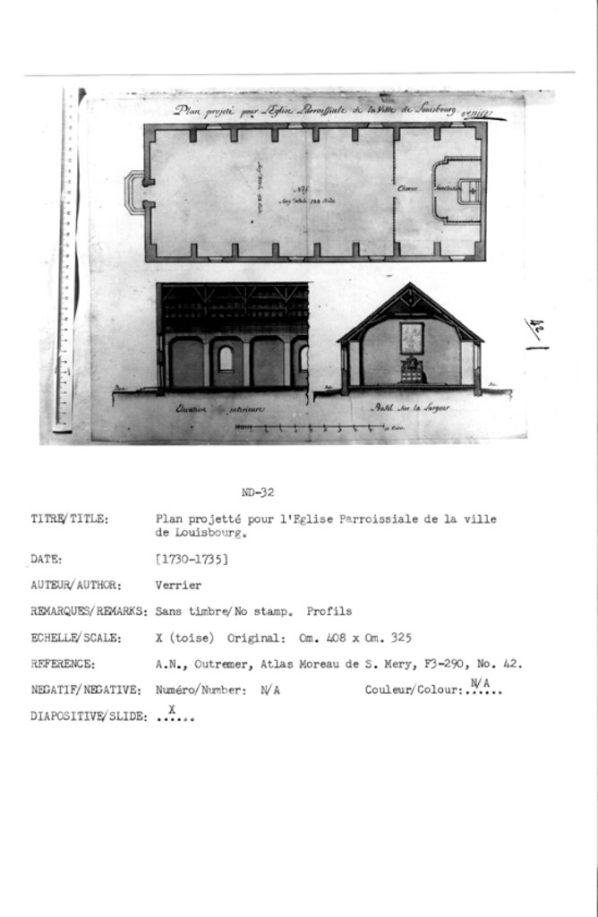 Plan projeté pour LEglise Parroissiale de la Ville de Louisbourg