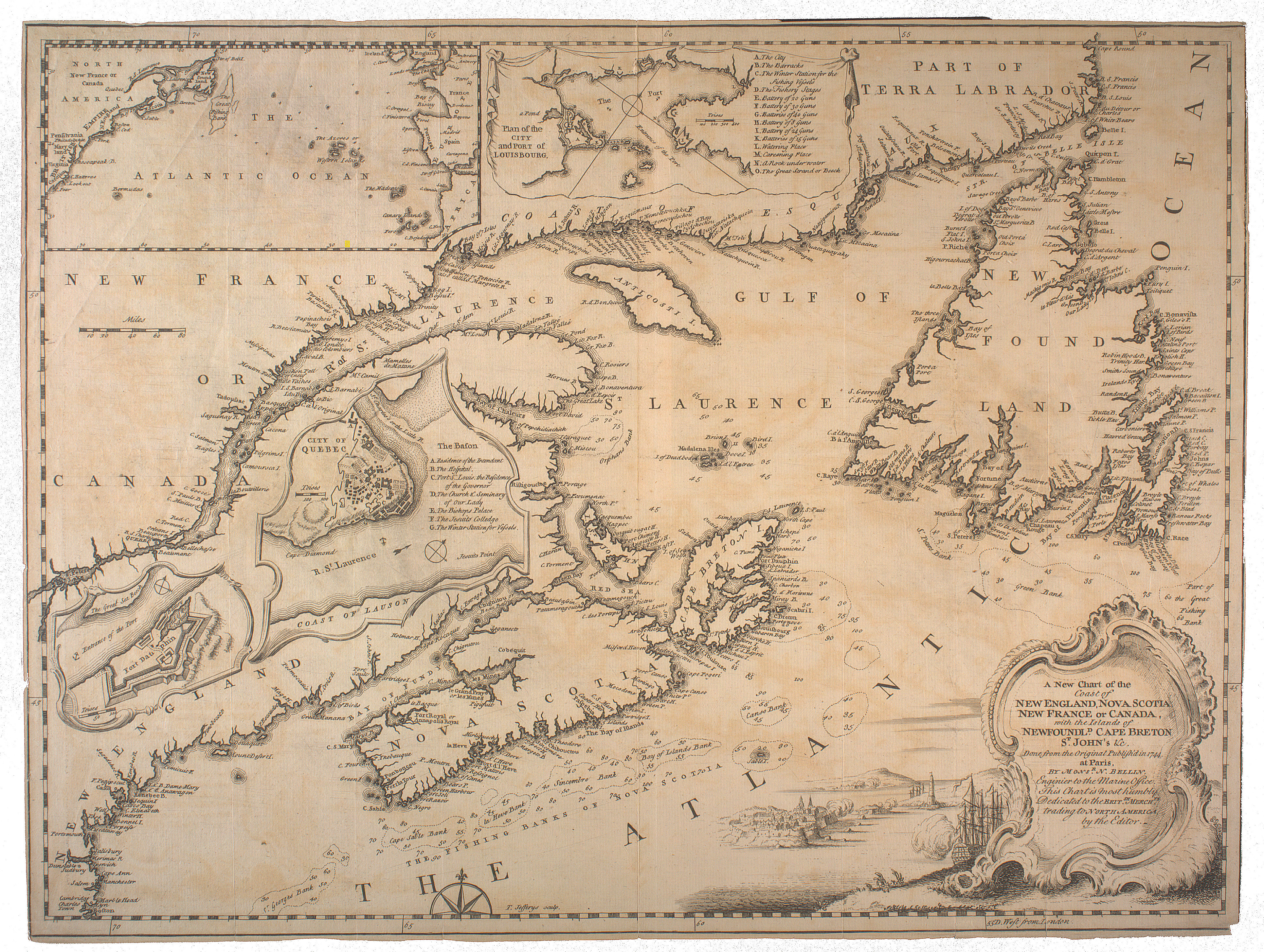 A New Chart of the Coast of NEW ENGLAND, NOVA SCOTIA NEW FRANCE OR CANADA, with the Islands of NEWFOUNDLAND. CAPE BRETON ST. JOHN'S, &c. Done from the Original Publish'd in 1744. at Paris. by M