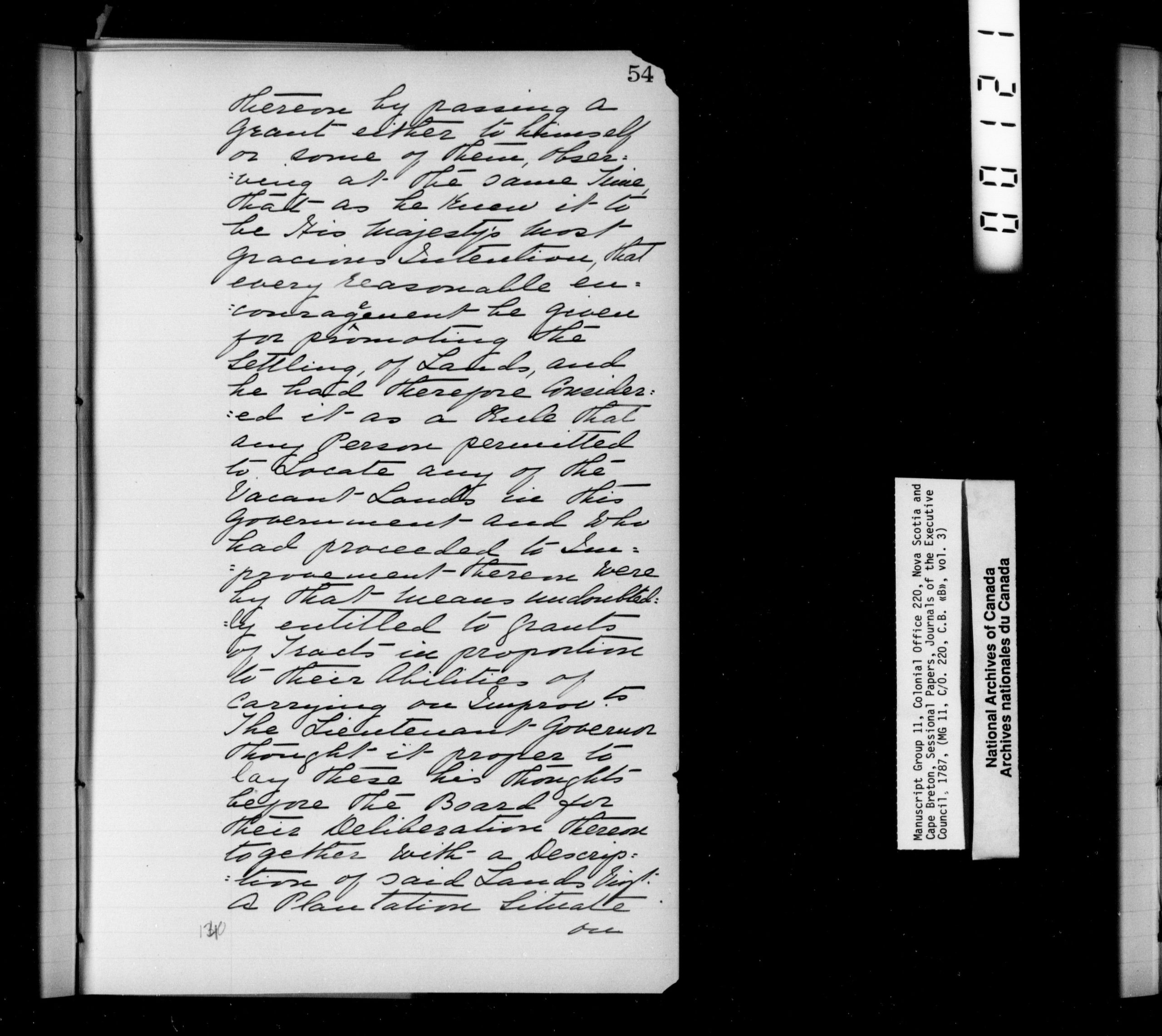 Manuscript Group 11, Colonial Office 220, Nova Scotia and Cape Breton Sessional Papers, Minutes of Executive Council, 1787 (M.G. 11, C.O. 220, C.B. "B", Vol. 3 ff. 53-58