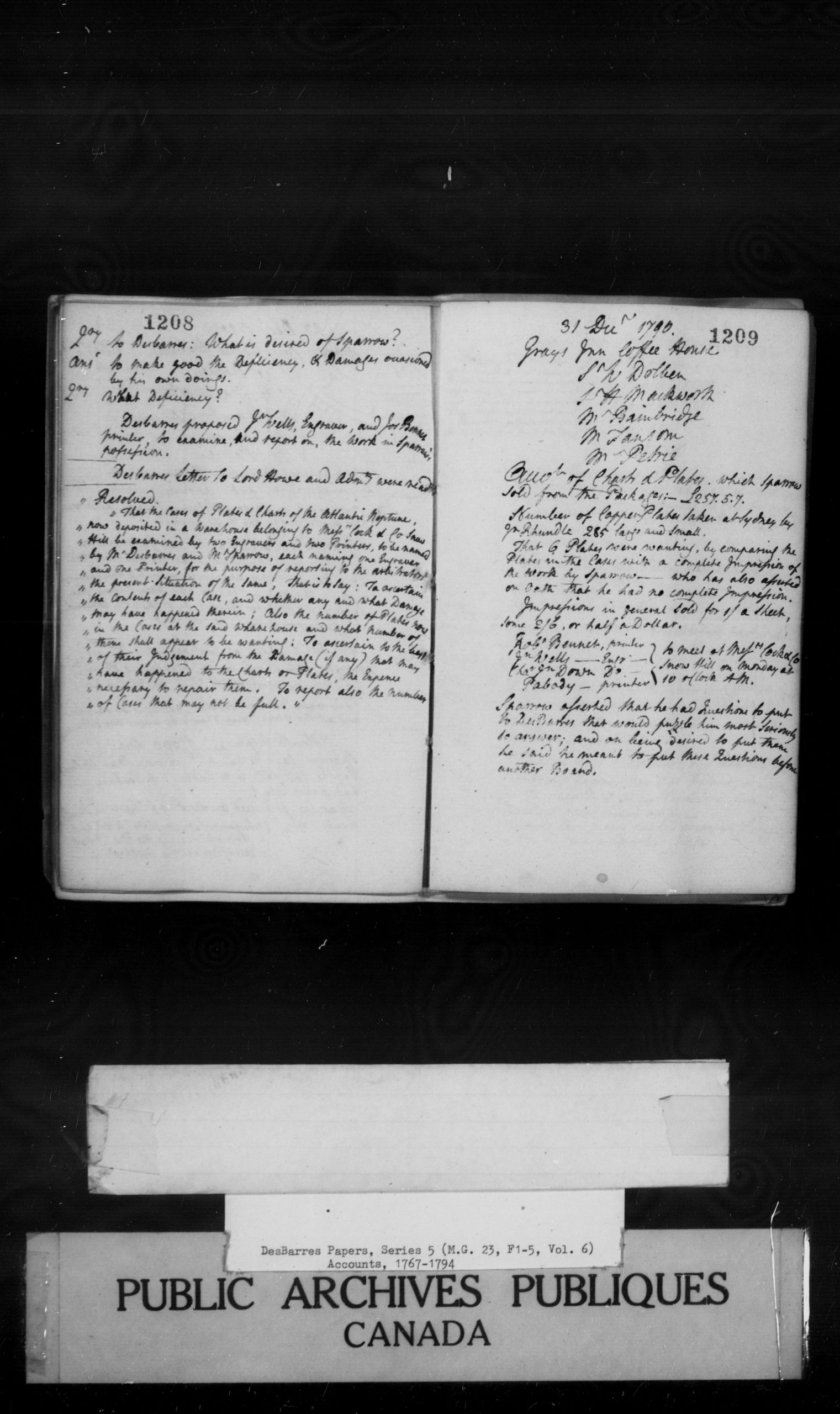 DesBarres Papers, Series 5, M23, F 1-5, Volume 6, Accounts, 1767-1794, December 31, 1790, p. 1209