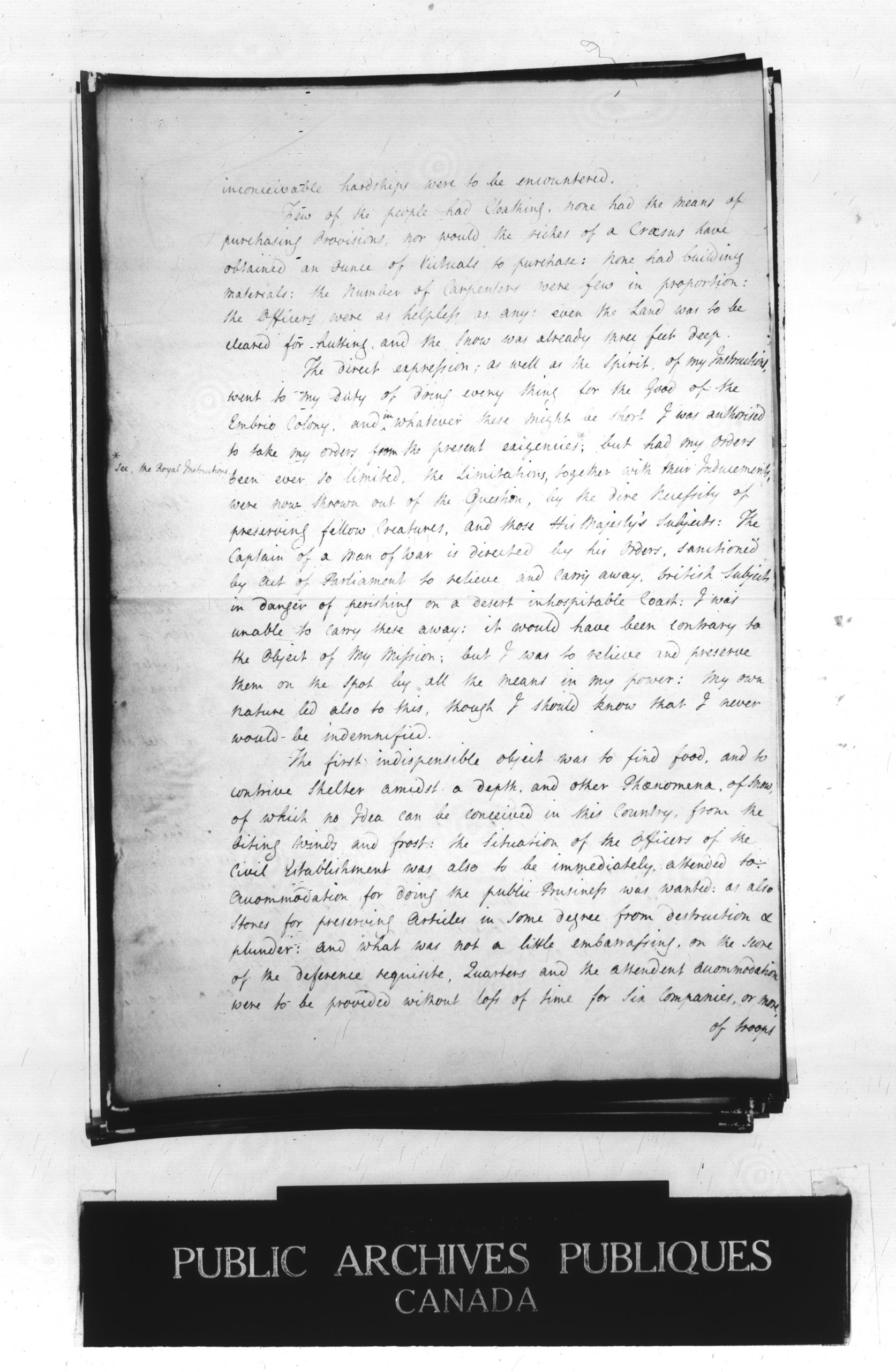 | [Page 19] My earliest visitors were the holders of the protested Bills. I endeavoured to console them with the sole prospect which supported myself - Lord Sydney's promise of a trial & of the Settlement of my accounts ... |