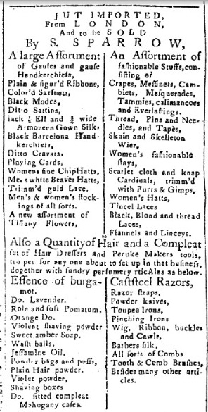 "JUT IMPORTED from LONDON and to be SOLD By S. SPARROW"