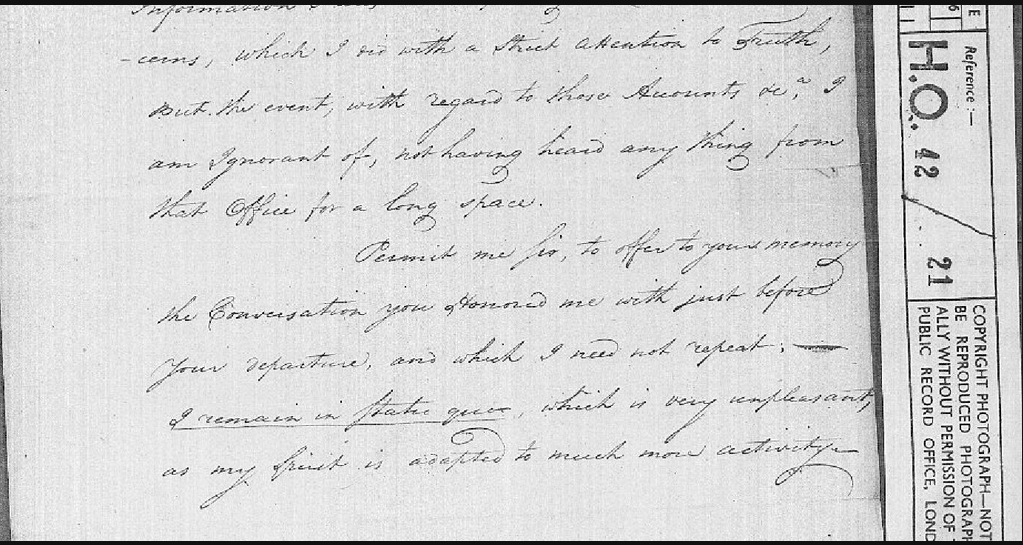 HO 42/21 - HO 42. Letters and papers. Piece described at item level.http://discovery.nationalarchives.gov.uk/details/r/C10750550