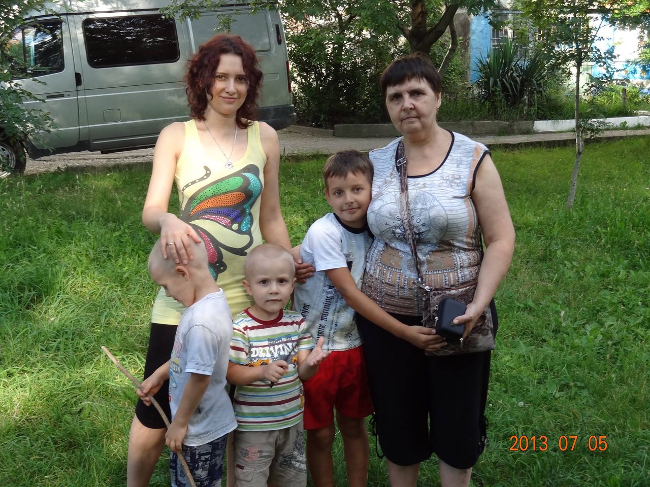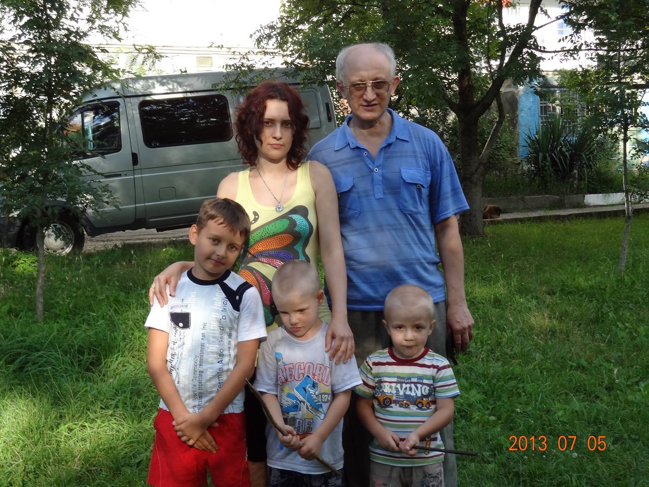 To the left are my wife, Olga with her two sons and our older grandson Alex from our second daughter Galina (not present at the picture). To the right it's me with Olga and our three grandsons (Alex - the older, Victor - the middle, and Roman - the younger). Victor doesn't like to be photographed