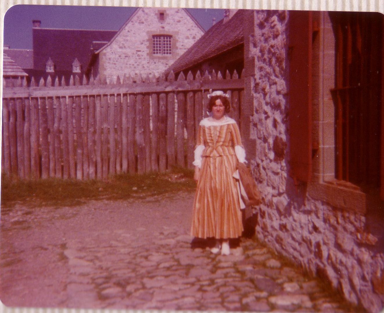 As members of the Fortress of Louisbourg Volunteers, from time to time, in the first couple of years, Lynda and I played a role in costume in special events: Me as a soldier; Lynda as an inhabitant. Lynda continued her costume days later when she became manager (1979) of the on site De La Plagne House coffee and pastry shop operated by the Volunteer organization