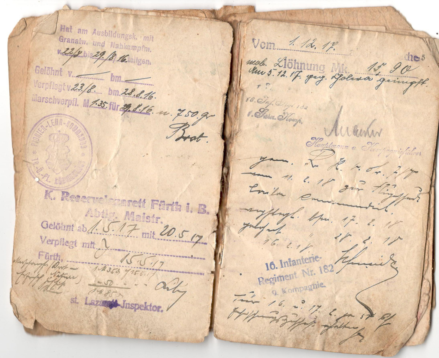 SUMMARY SERVICE NOTE FOR ROYAL SAXON, 16TH INFANTRY REGIMENT NO. 182