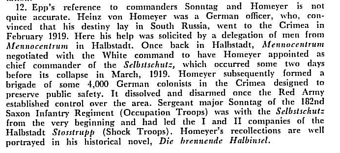 ... Meanwhile in the village of Rückenau, Molotschna, an informal meeting of fifteen or twenty men was held which had direct implications for Janz's work in Kharkov. They discussed the possibility of repatriation to Germany, a procedure allowable under the terms of Brest Litovsk. As a result of the meeting, 137 private petitions for emigration were addressed to the German government. H. Kornelsen of Alexanderkrone was selected to take them to Kharkov and to facilitate their processing with Janz's help ...