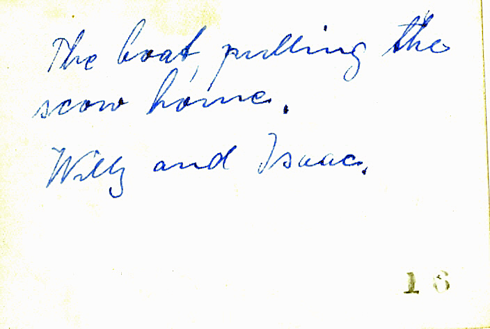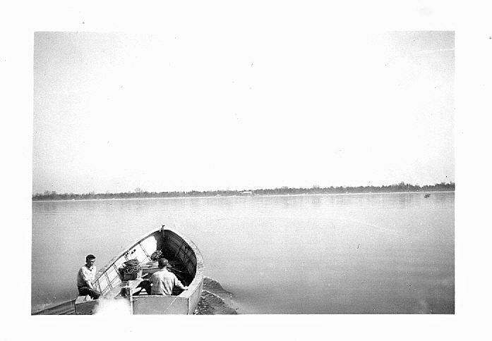 It had returned from a wood sawing bee in the country with my man-sized brothers (Herm & Aub Robson) and cousin Jack. We owned a flat bottom pound boat (fishing boat used for pound net fishing) then 24 feet long. We called her "The Daisy" and a daisy she was - single cat rig, tight set to the sea, fat and quick on the tiller as a gull on the wing. The toast of our shores was our Daisy - she and the two men who sailed her, Jack and Herm. It took precious time to unstow the Daisy's winter stored canvas and fit out the stripped craft ... Her great sail reefed and set, the Daisy slipped into the winter water, With a free sheet she swept out and away, like something frightened.