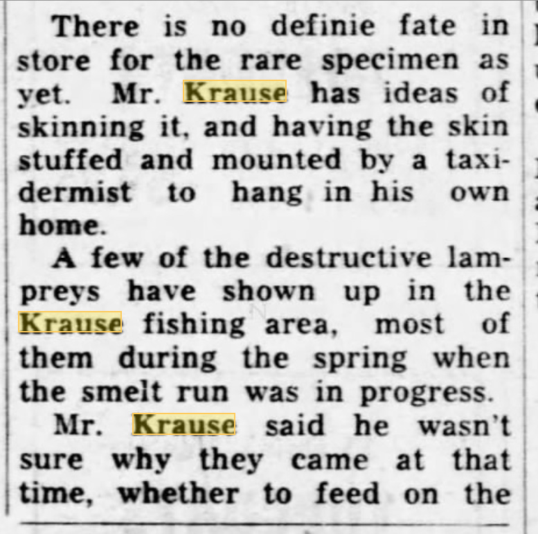 Rare finds during those years included Cohoe Salmon, American and Lamprey