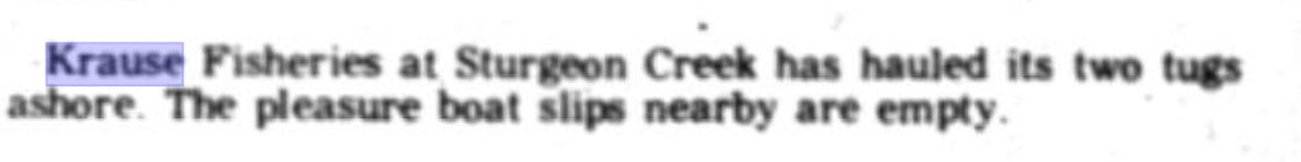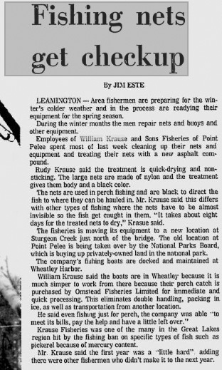 In 1969, Krause Fisheries relocated to Sturgeon Creek where the buildings still stand today after operating their trap net fishery and retail store out of there for several years.