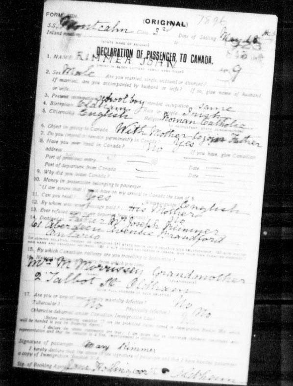 Age 6; With Mother to Join Father; His Father was Joseph Rimmer, 61 Aberdeen