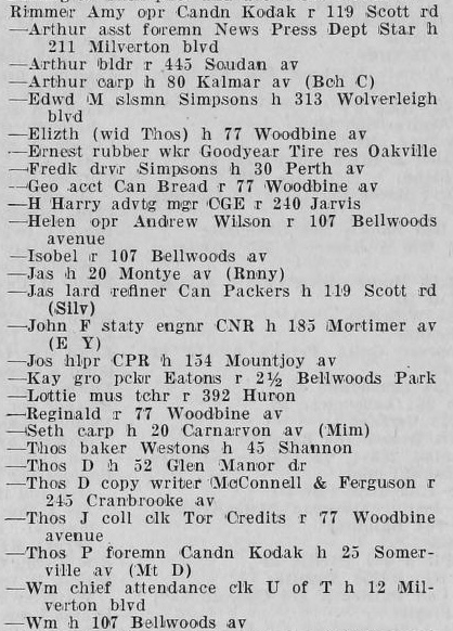 Vernon's city of Sarnia, Ontario, directory - 1958, pp. 103, 403