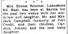 Pearl Rimmer (Mrs. Jack Campbell), Sarnia