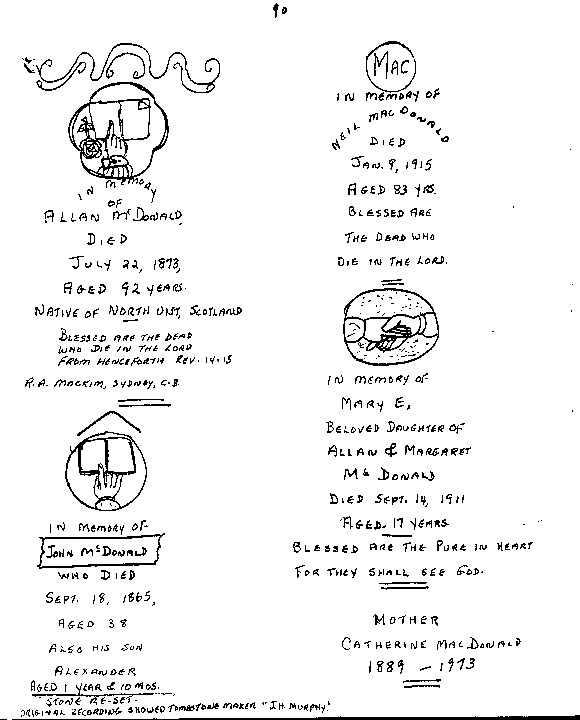 Loch End Cemetery (Protestant) Catalone established 1837, incorporated March 1, 1897, Cape Breton County.