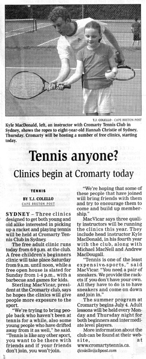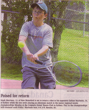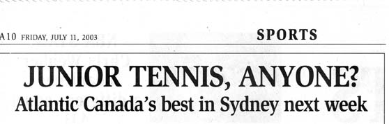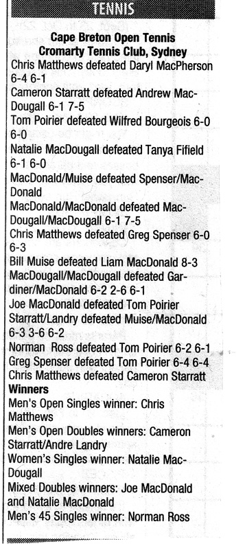 by Tennis Nova Scotia today and appear in Friday's edition of the Cape