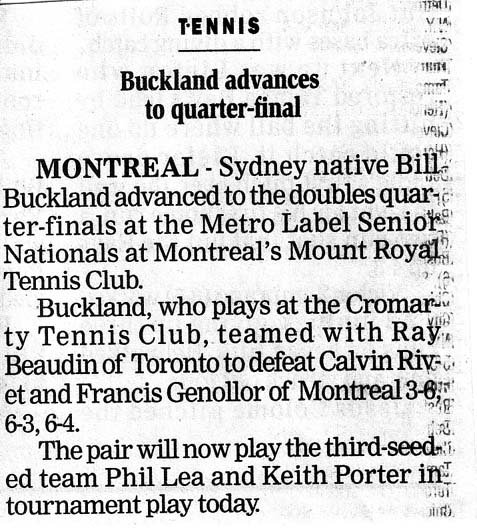 Senior nationals; Bucklamd wins at Vancouver senior tennis event; Buckland