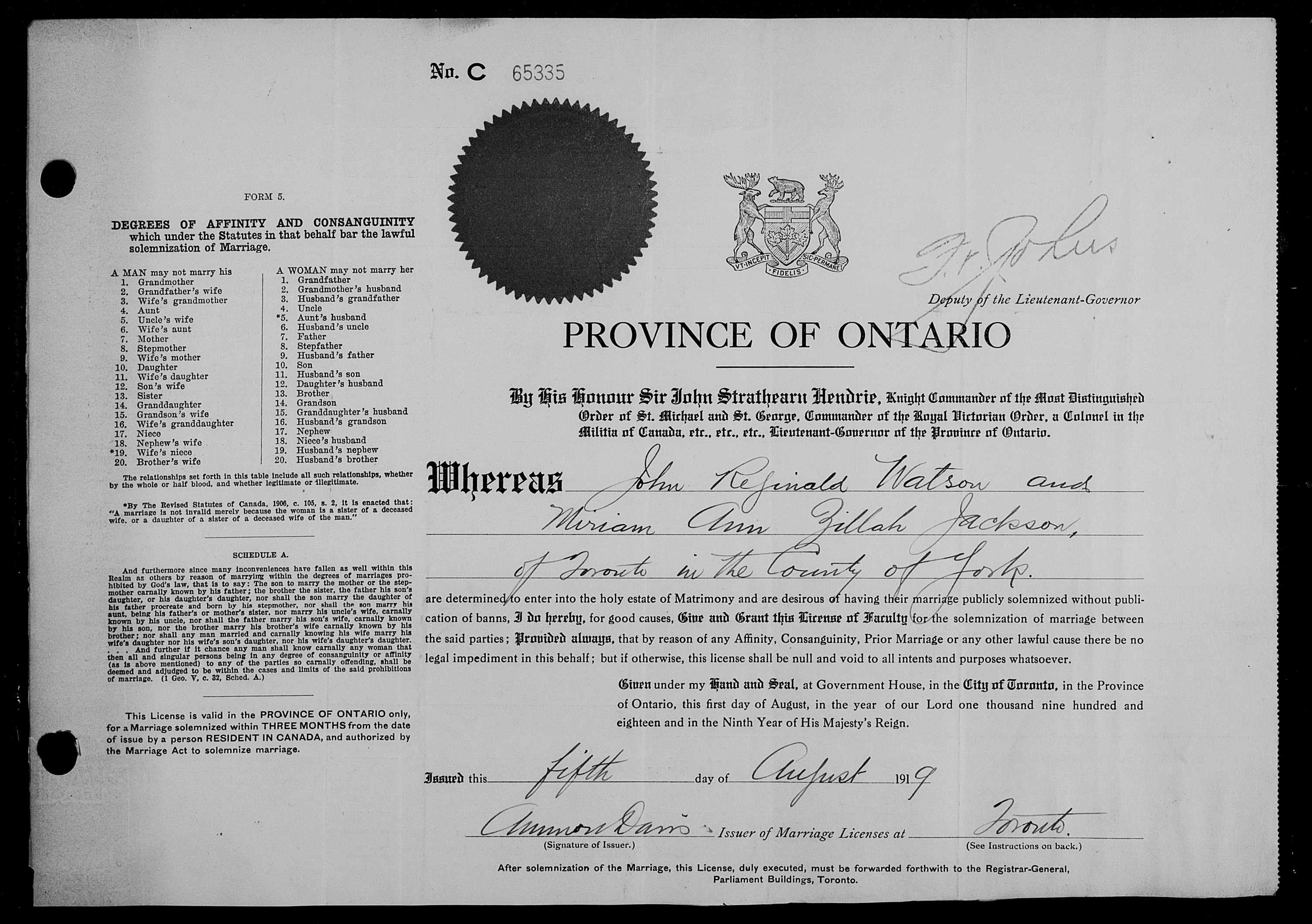Frederick William Laurence Watson married Laure Reine Whitaker on September 30, 1939, when he was 26 years old.
