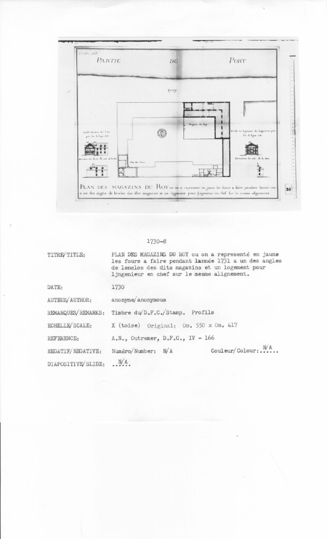 Plan du magasin des Vivres et du Logement des officiers four & a faire ou port toulouze 1733