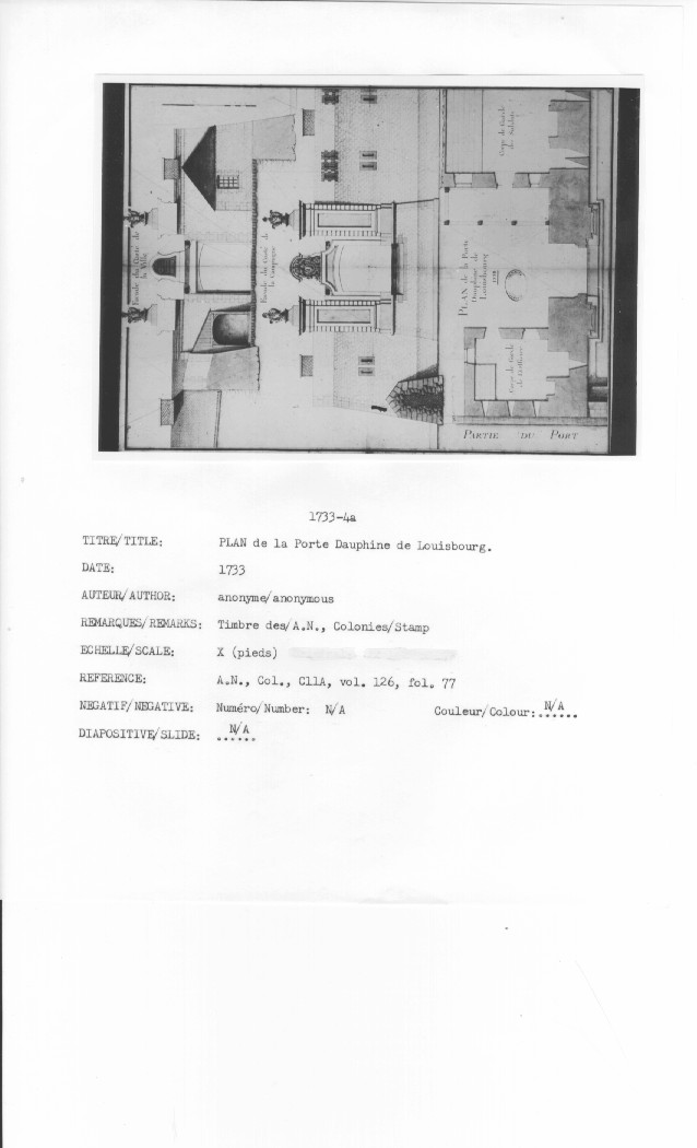 For additional text details (no images): HISTORICAL MAPS AND PLANS COLLECTION / CARTES ET PLANS HISTORIQUES (Description and Analysis of the Louisbourg and Isle Royale Map and Plan Collection / Descriptions de la Collection des plans et cartes de Louisbourg et d'Ile Royale - fortmaps.tba)