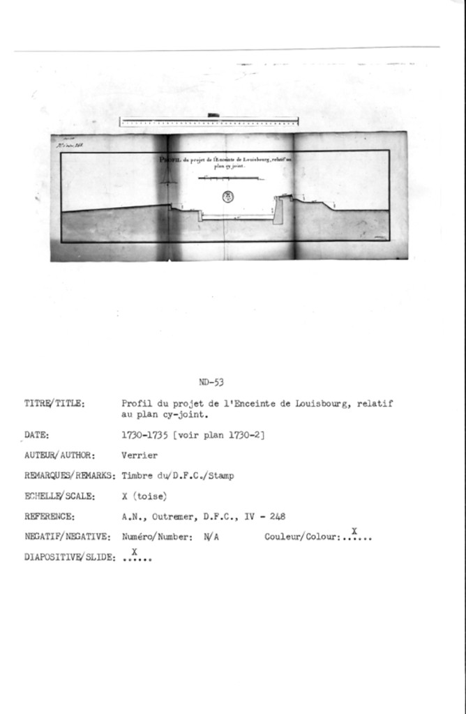 PROFIL du projet de l'Enceinte de Louisbourg, relatif au plan cy-joint.