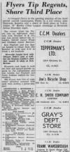 will have an exciting team with Eric Mackenzie as our coach, and Fred Epplett as our manager. We list the following boys who are currently trying out with our team and who are all from our Sun Parlour District. From this list, we feel an interesting club will be formed, and we leave this to you, the Hockey Fans, to be the judge at our opening game, Thursday, 8:15 p.m. sharp, with gala opening ceremonies at 7:45. |