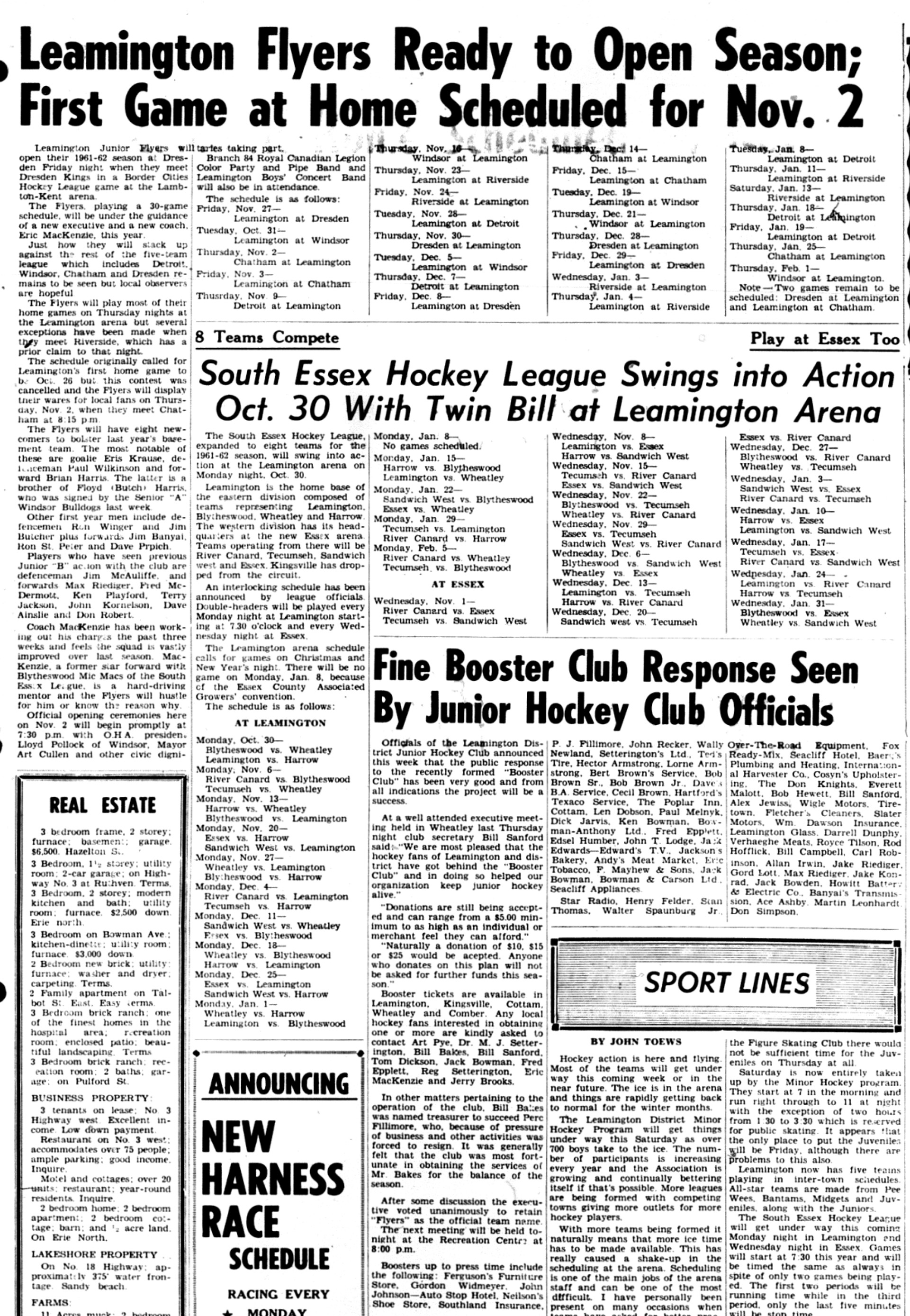 "The Flyers will have eight newcomers to bolster last year's basement team. The most notable of these are Eris [sic] Krause ...Junior "B" action ..."