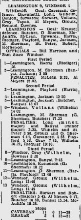 "Eric Krause wound up the season with an average of 5.20 goals per game. He was scored on 156 times in 30 contests. He had one shut out ..." [Leamington Post and News, Thursday, February 15, 1962)