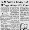 "Out of the league playoffs the Flyers battled Dresden in the best of seven OHA Jr. C only to lose the seventh game in overtime with only 40 seconds left. Being down 3 games to one and leading with less than 6 minutes left, the season ended when a 90 foot bouncing shot from centre skipped past the goaltender [Krause] costing the Flyers the game ..."