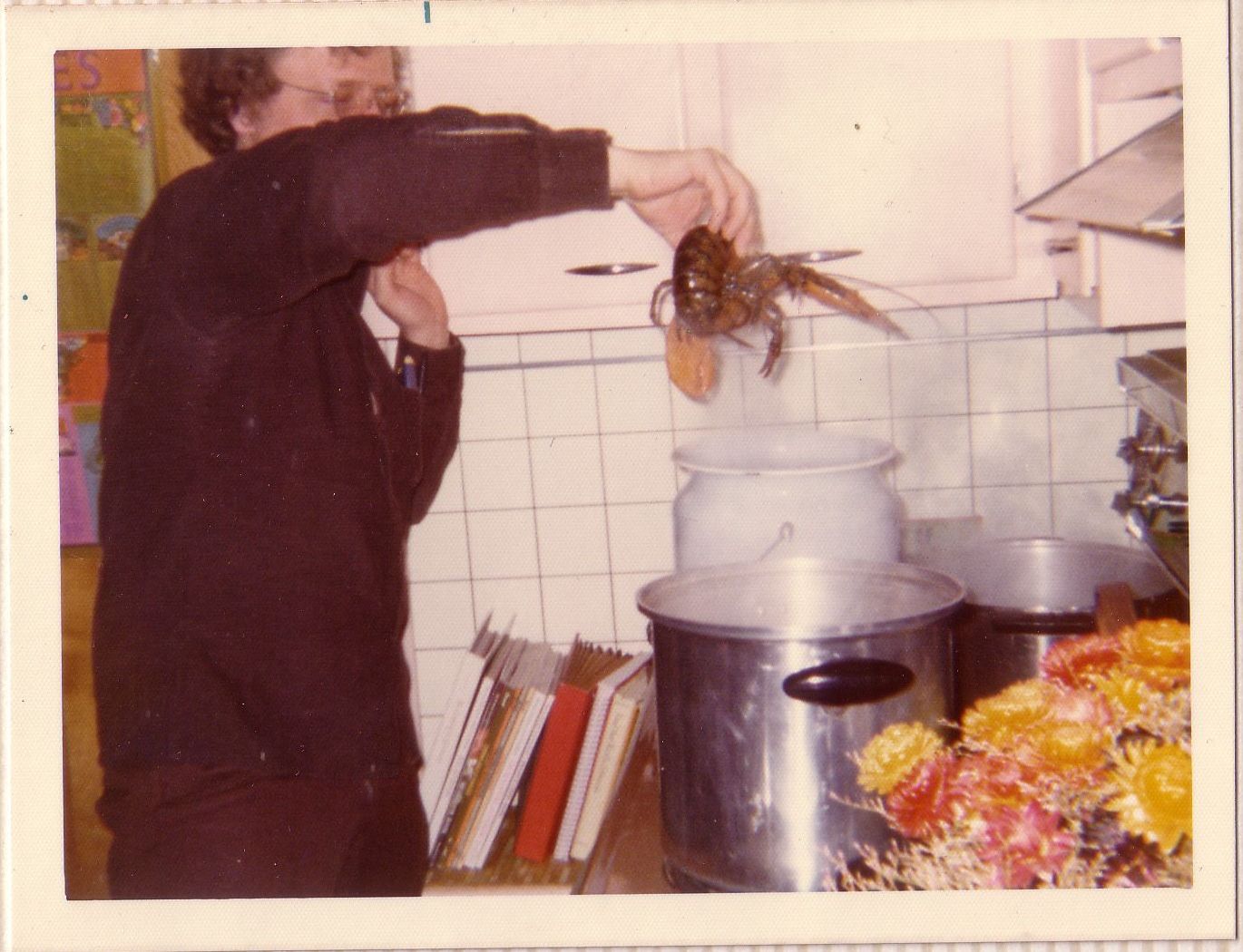 Lobster has been enjoyed at Krause House many times, often, for special events like Lynda's birthday (June) or say, Christmas. In 1972, and many years after, lobster was an inexpensive meal, and they were often bought by the dozen (locally called "shacks", that is, small canners, or less than a pound each) rather than by the pound .