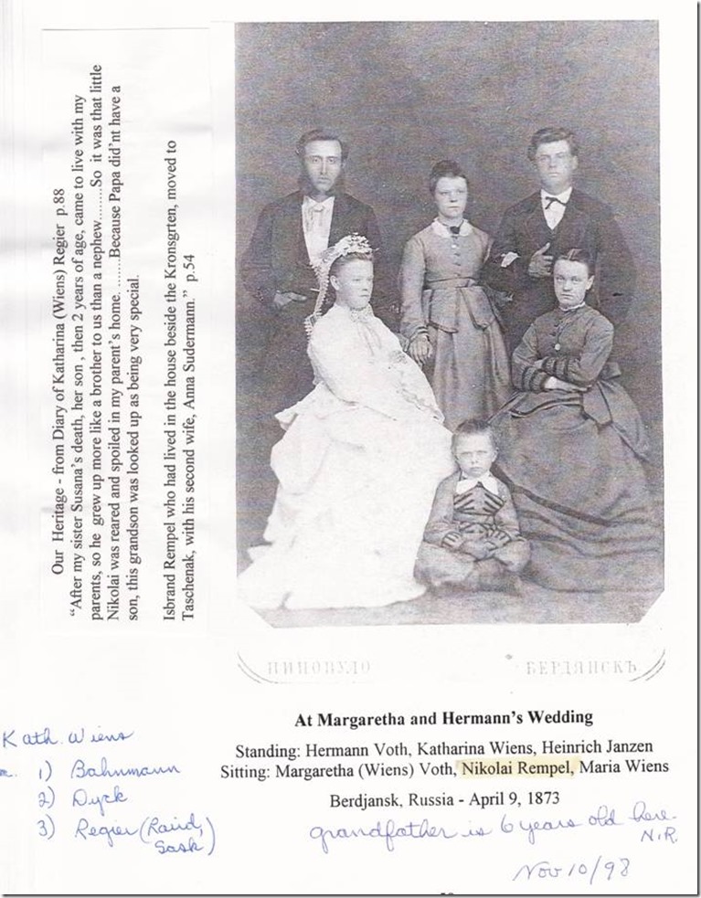 "My father Henry Kornelsen, Helena Martens, Mrs Voth, John Penner, Helen Penner, Henry Penner,