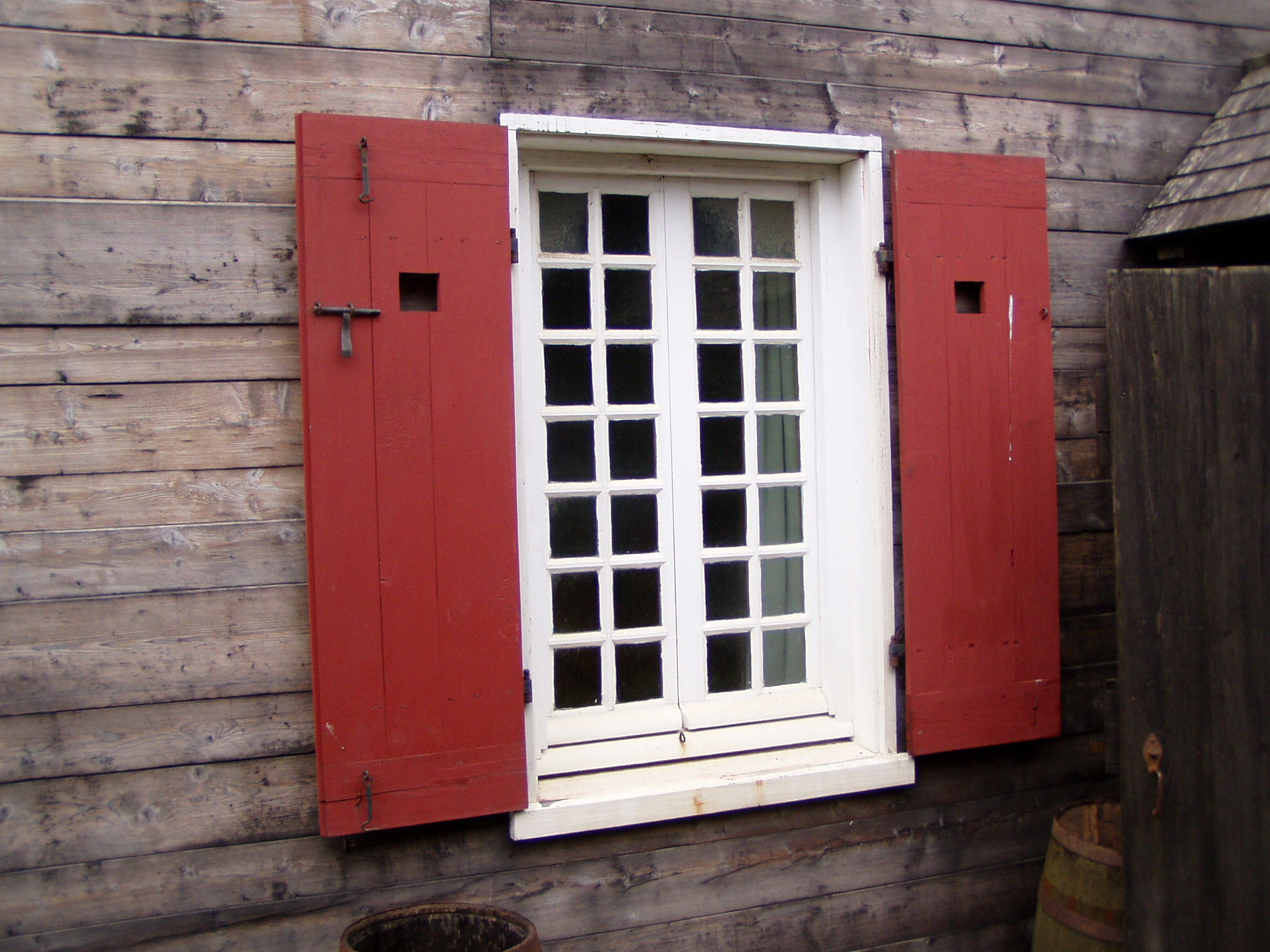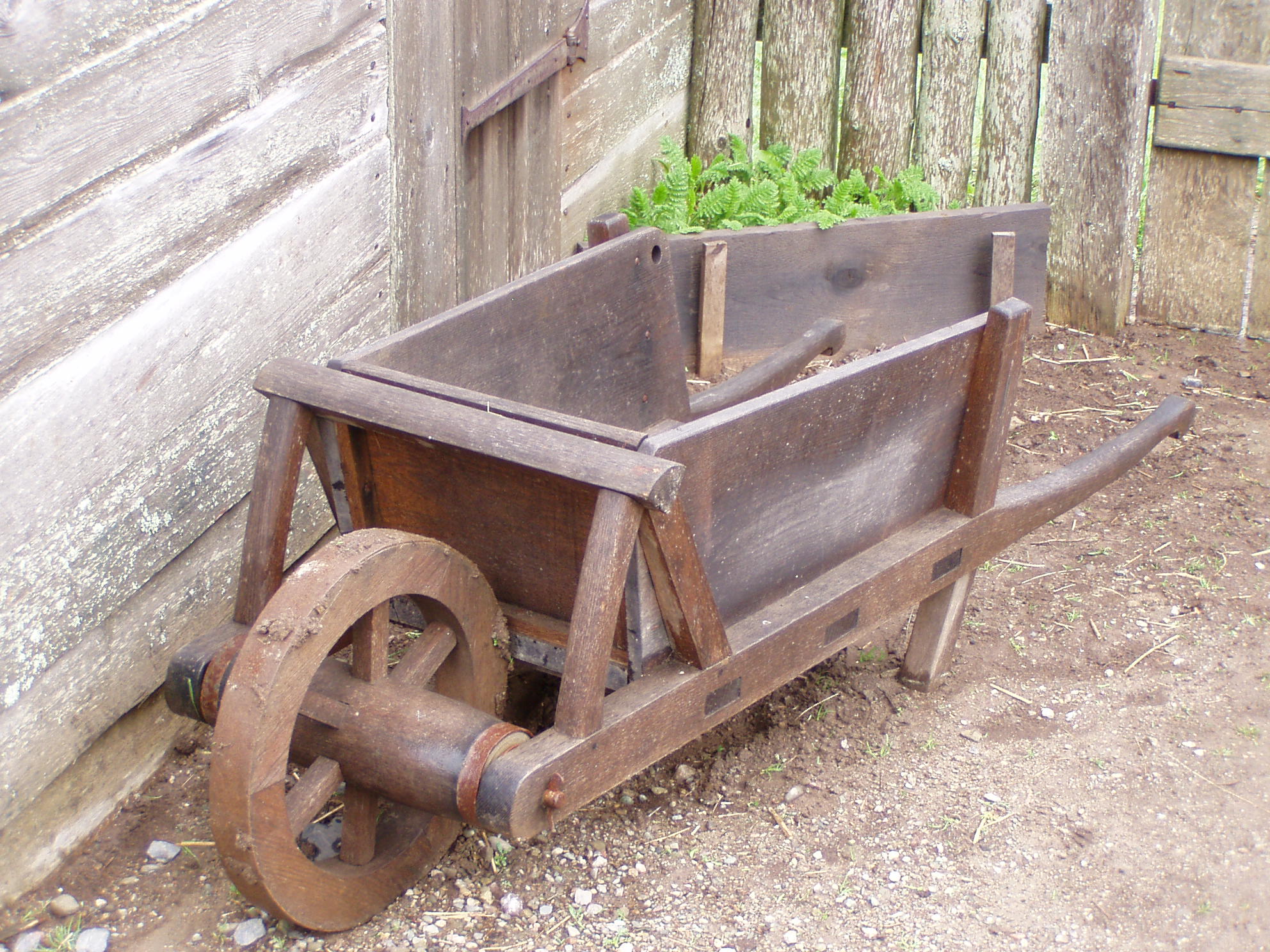 Wheel barrow in De Gannes garden Window: De La Perelle House Window: Duhaget House Woodlot building Woodlot house towards barracks