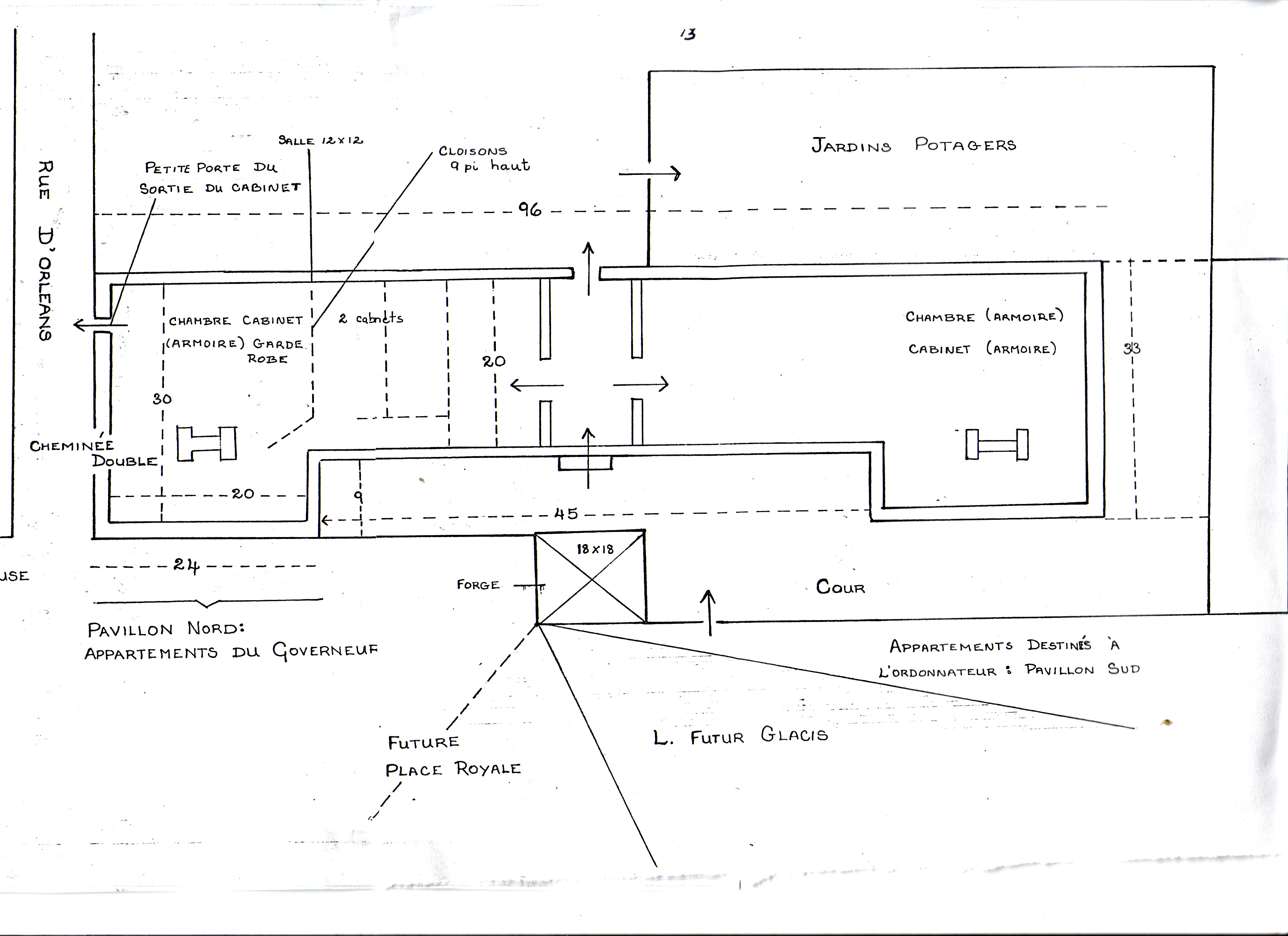 Select image from: "Ancien Gouvernement" By Claude Poulin, Illustrations: Pierre Mayrand Appendix 4 in: King's Bastion Report VIII: A Survey of the Terrain of the Citadel Area Prepared for the Purposes of Archaeological Excavation By John Fortier, Unpublished Report H A 11 S 2 (Fortress of Louisbourg, July 30, 1965)   N/A