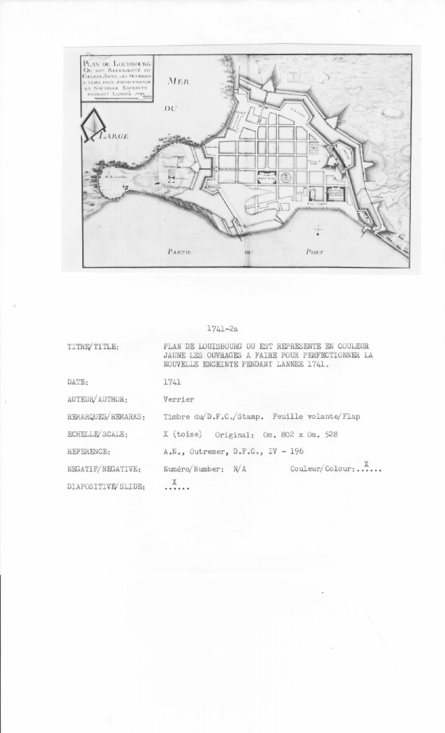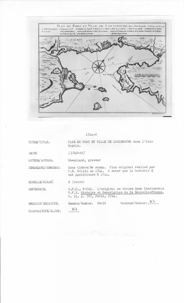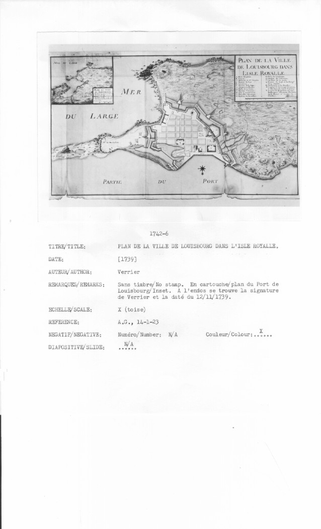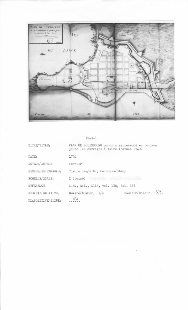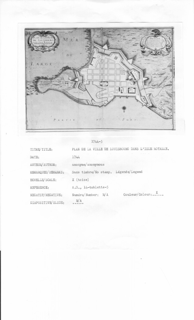 For additional text details (no images): HISTORICAL MAPS AND PLANS COLLECTION / CARTES ET PLANS HISTORIQUES (Description and Analysis of the Louisbourg and Isle Royale Map and Plan Collection / Descriptions de la Collection des plans et cartes de Louisbourg et d'Ile Royale - fortmaps.tba)