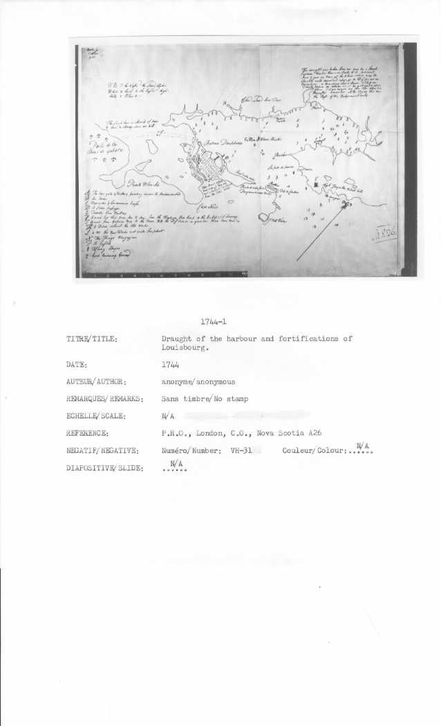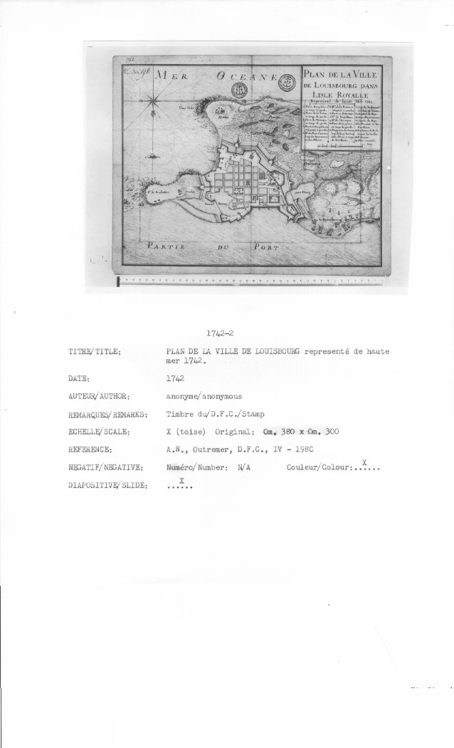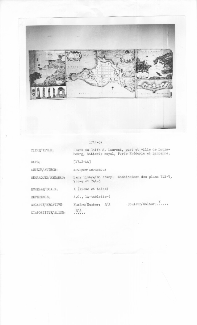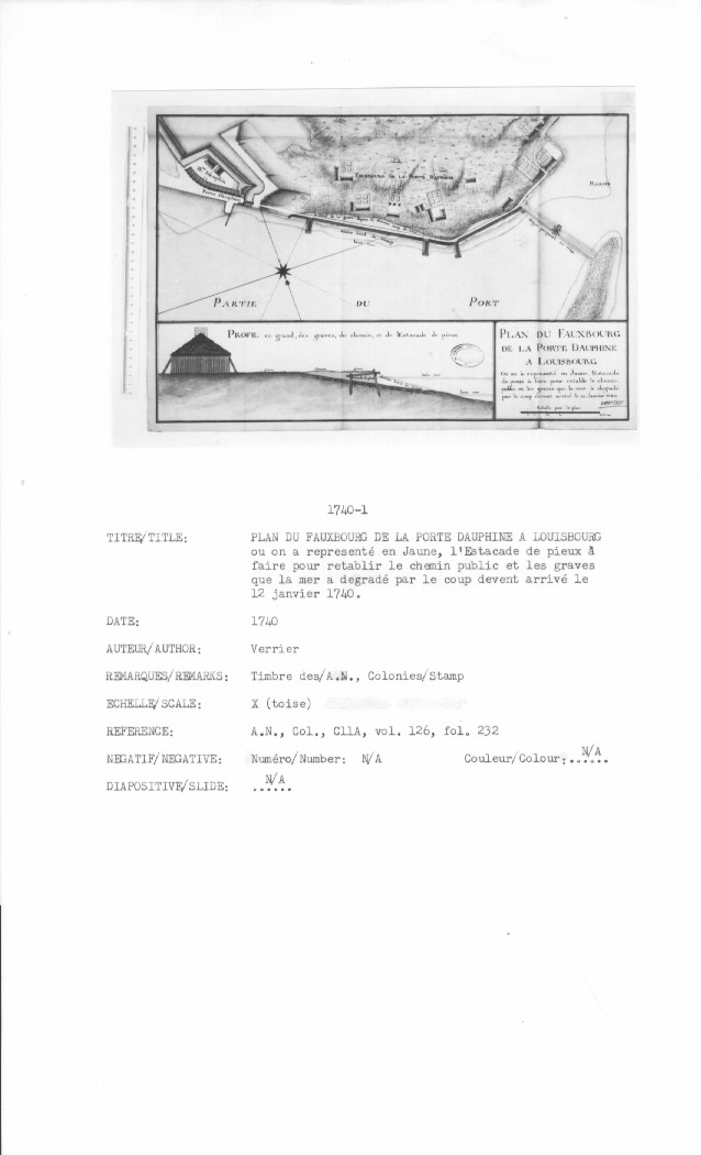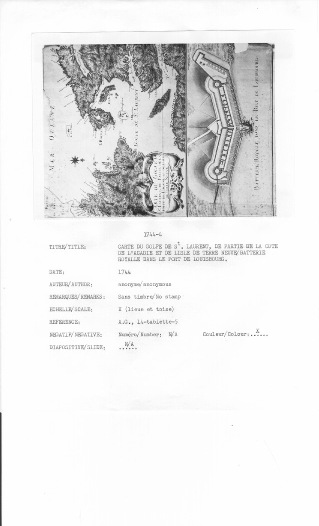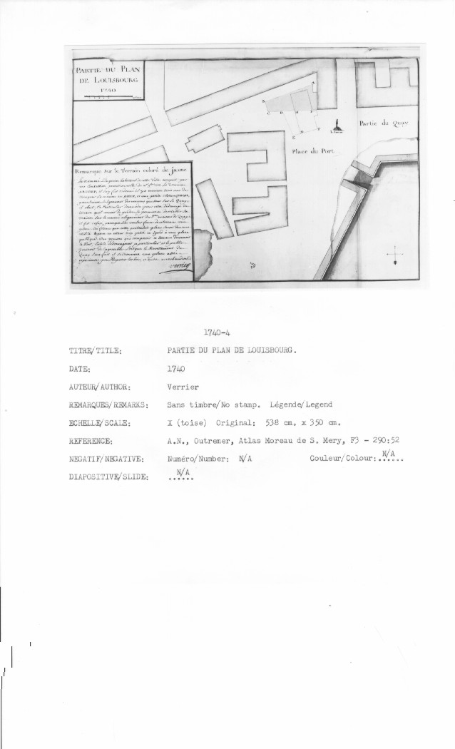 For additional text details (no images): HISTORICAL MAPS AND PLANS COLLECTION / CARTES ET PLANS HISTORIQUES (Description and Analysis of the Louisbourg and Isle Royale Map and Plan Collection / Descriptions de la Collection des plans et cartes de Louisbourg et d'Ile Royale - fortmaps.tba)