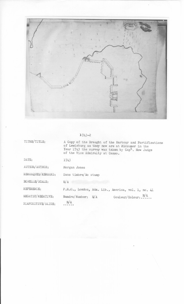 A Copy of the Draught of the Harbour and Fortificaions of Lewisburg as they now are at Midsumer in the Year 1743 the Survey was taken by Capt. How Judge of the Vice Admlty at