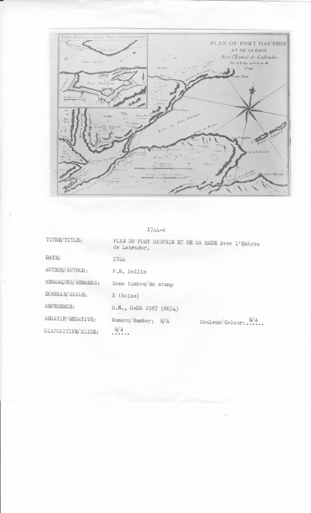 PLAN DU PORT DAUPHIN ET DE SA RADE Avec l'Entrée de Labrador Par N. B. Ing. au D. de la M. 1744