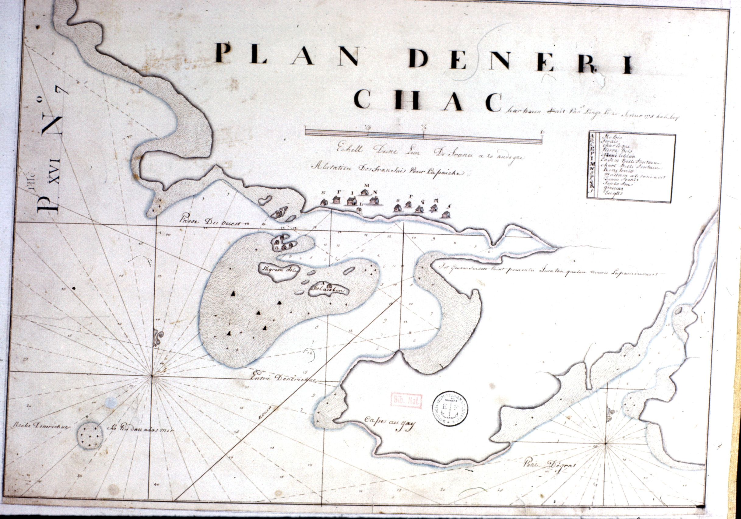 PLAN DU PORT DAUPHIN DE LA RADE DE STE ANNE DE L'ENTRÉE DE LABRADOR ET DE LA RADE DE NIGANICHE Dressé au Dépôt Général des Cartes, Plans et Journaux de la Marine, Par Order de M. DE SARTINE, Conseiller d'Etat, Ministre et Secrétaire D'Etat au Département de la Marine
