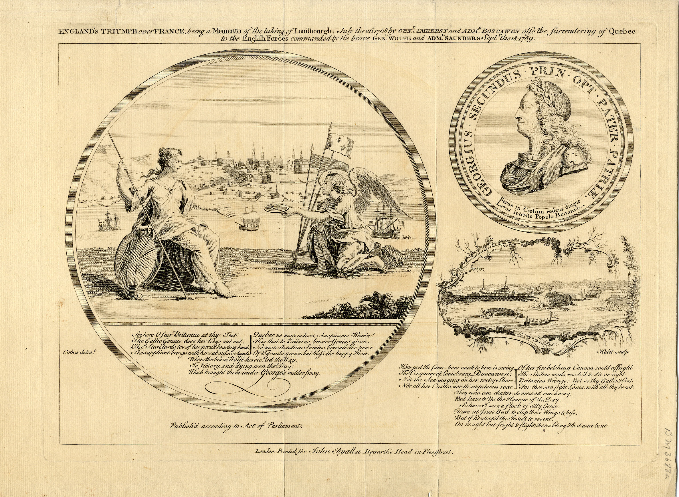 ENGLAND'S TRIUMPH over FRANCE, being a Memento of the taking of Louisbourgh, July the 26. 1758. by GEN.L AMHERST and ADM.L BOSCAWEN also the Surrendering of Quebec ....