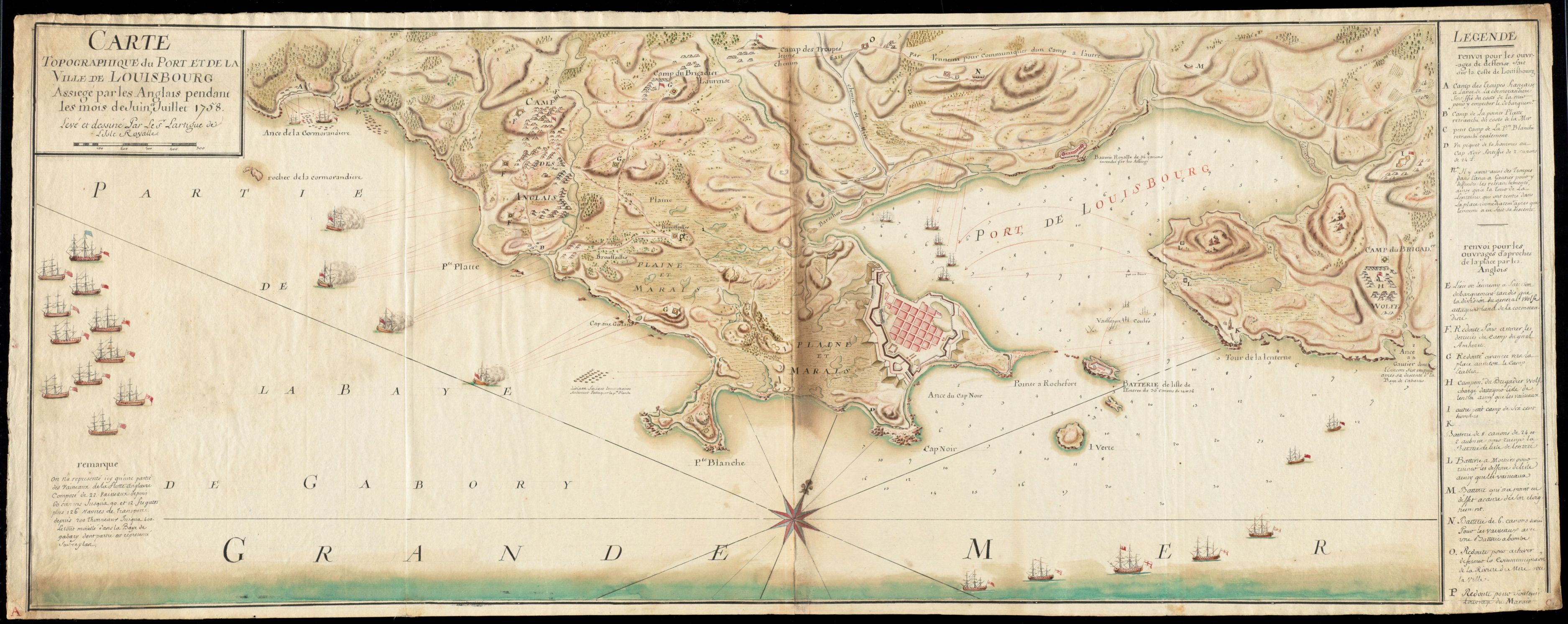 CARTE TOPOGRAPHIQUE DU PORT ET DE LA VILLE DE LOUISBOURG .... 1758 ... Lartigue ...