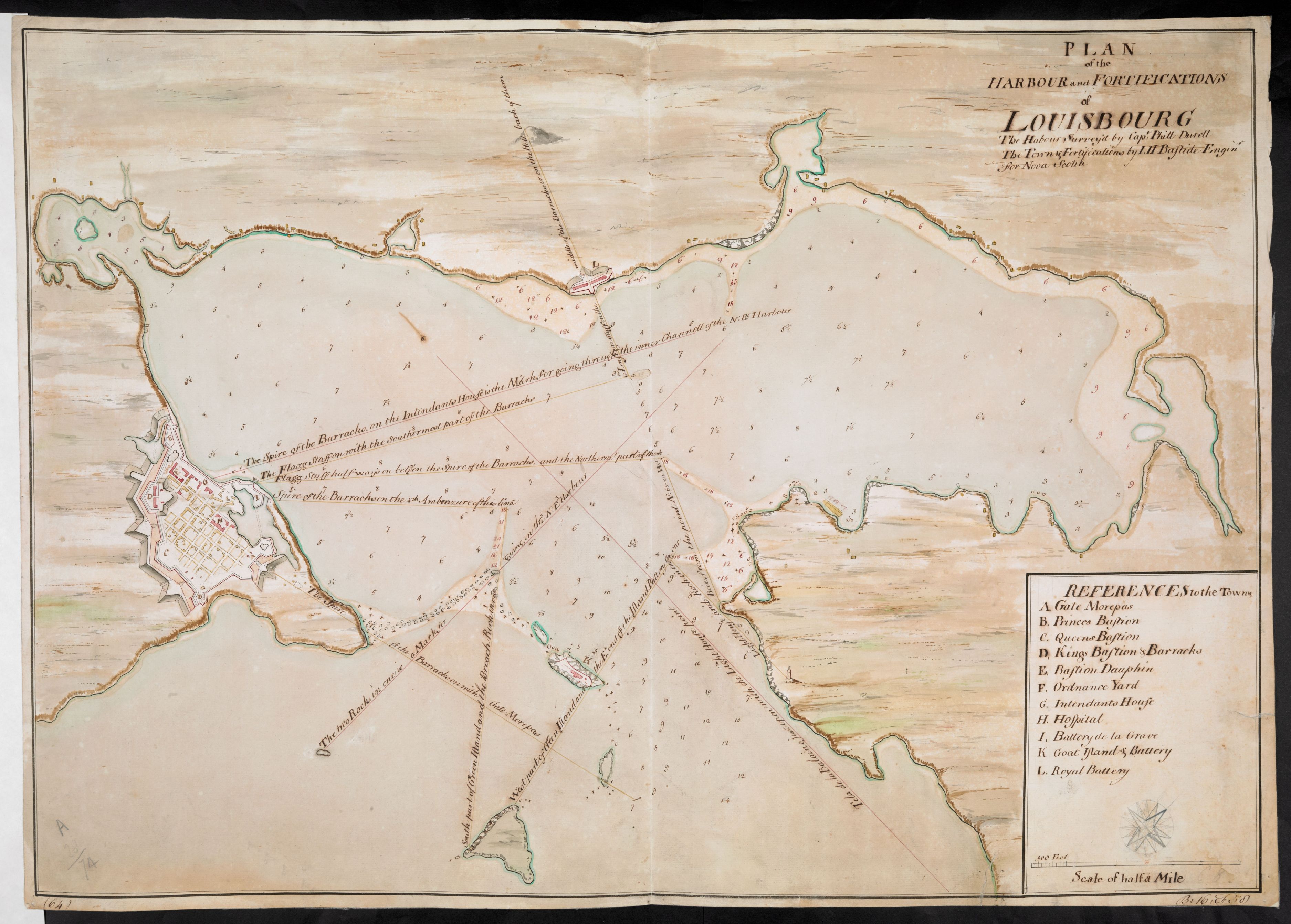PLAN of the HARBOUR and FORTIFICATIONS of LOUISBOURG The Habour Survey'd by Capt Phill Duvell .... Bastide ...