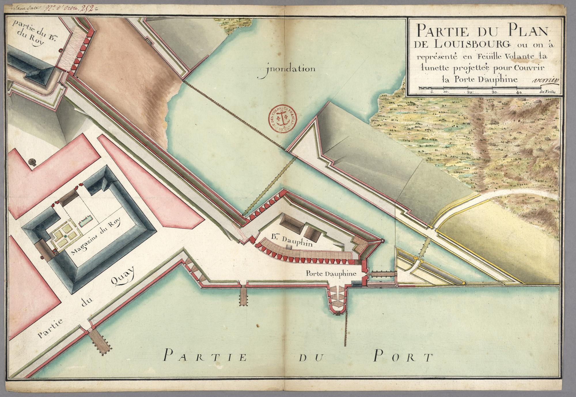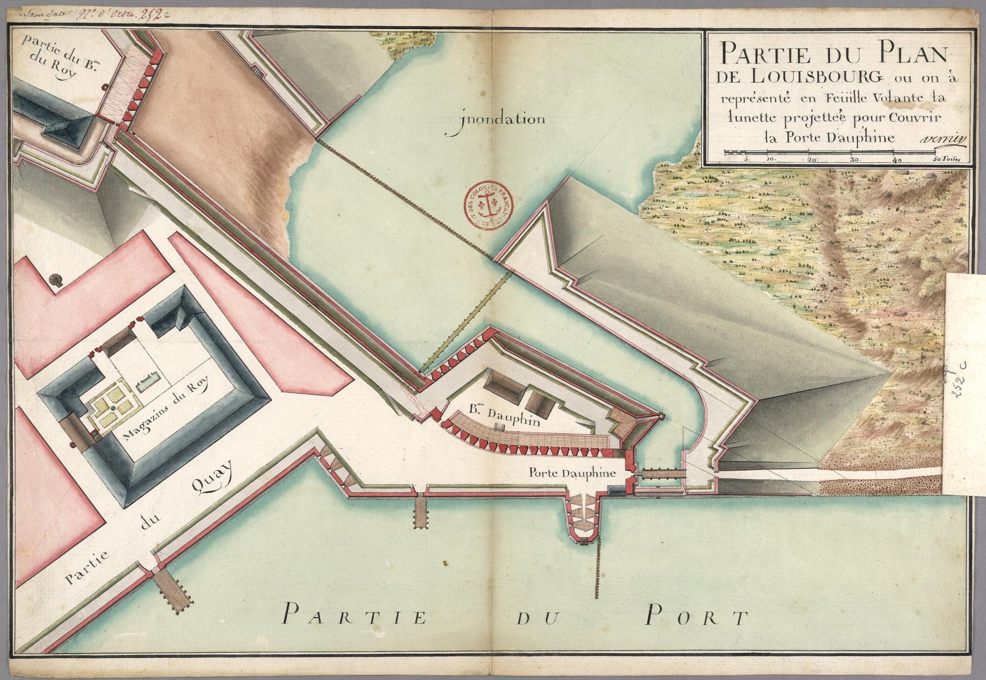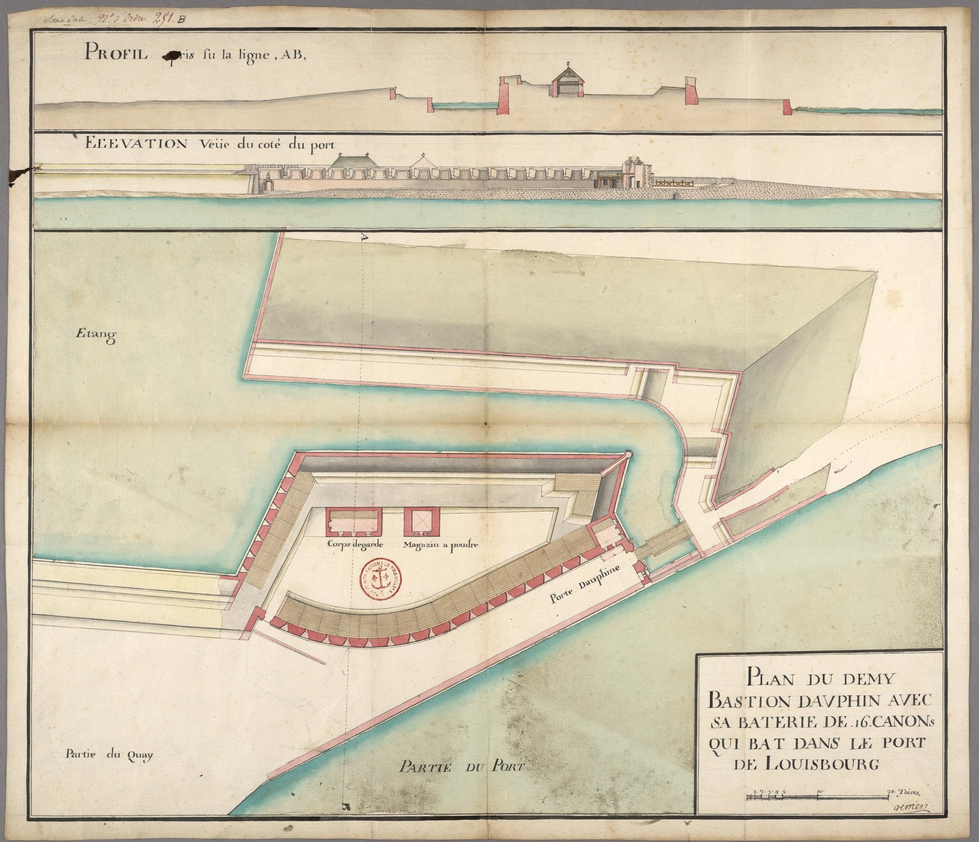 PLAN DU DEMY BASTION DAVPHIN AVEC SA BATTERIE DE .16. CANONs QUI BAT DANS LE PORT DE LOUISBOURG