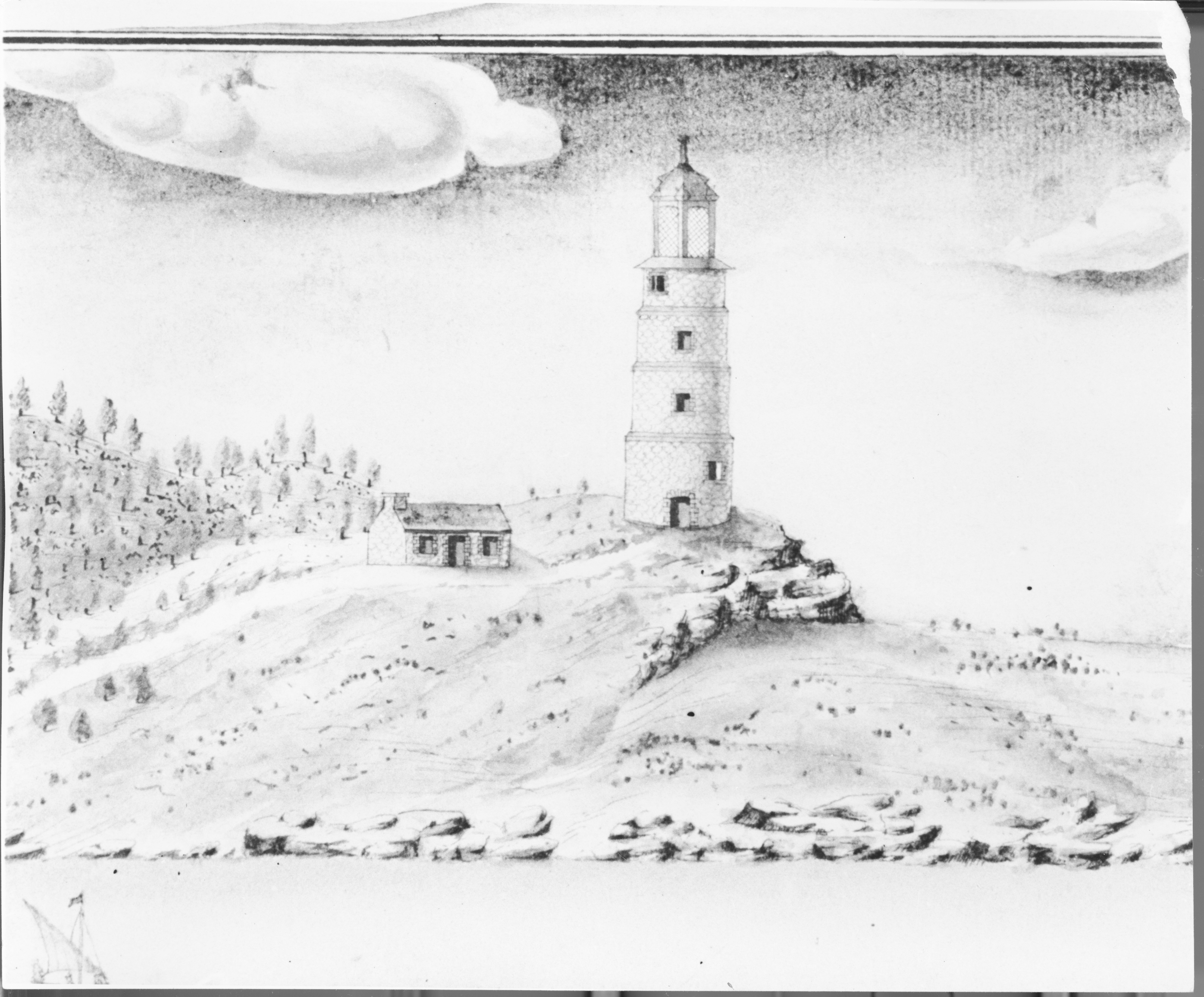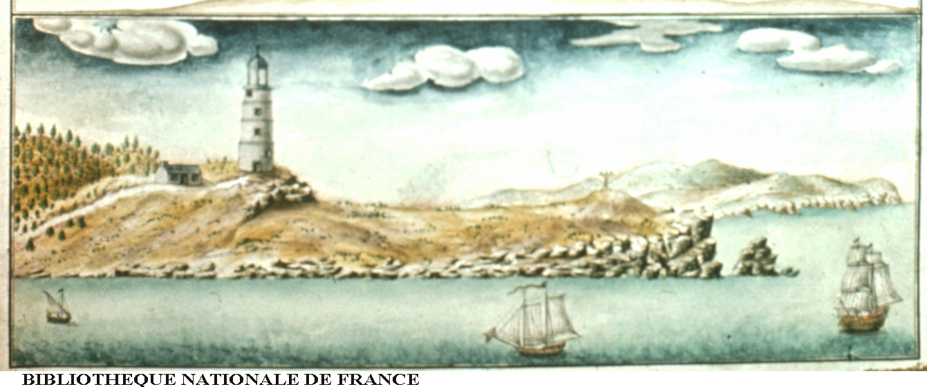VEÜE de la TOUR de la LANTERNE Sur l'Entrèe du Port de Louisbourg Establie pour la suretè de la Navigation