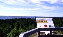 Along the trail are a number of interpretive panels-presented in both official languages as well as in Mi'kmaw. The panels present images and text on a range of topics, with both historical and contemporary information about the Mi'kmaw.