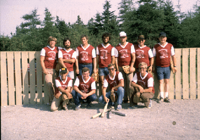 All players other than those noted all still working for Parks Canada. This photo was taken during the first ball tournament in 1980