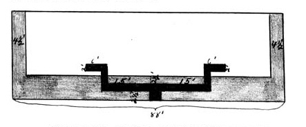 On July 4 the miners carried the branches to the right and left in the retired battery. The men found it necessary to dig to the revetment on each side because its thickness was greater than the amount of earth above the durns. The Report stated that the mine chambers were to be placed directly in the revetment of the battery. [518] Presumably, the revetment spoken of here was the one at the face of the battery since all representations of gallery No. 2 show the chambers in that revetment and not in the revetments of the flanks. [519] (Figures 35, 37 and 38)