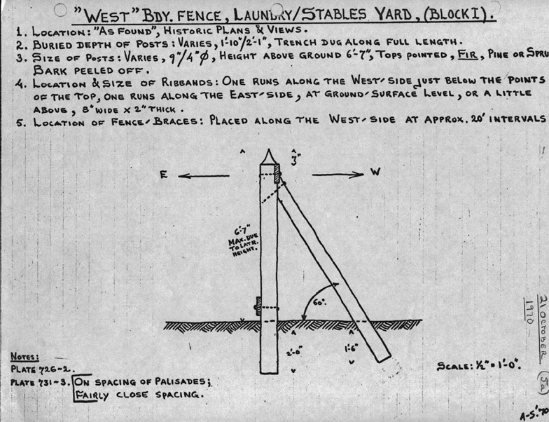 - "As-Found" palisade found in ditch had a horizontal peg hole not sloped as indicated on the design*sketch